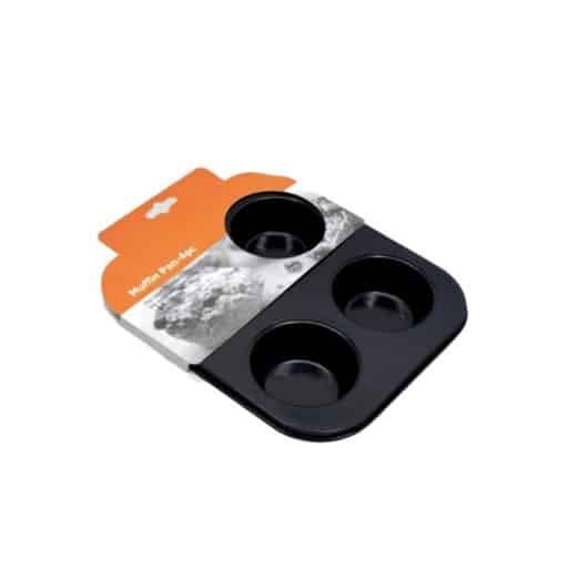 قالب كب كيك من ماركة Kroff، يحتوي على 4 اجزاء مصنوع من المعدن عالي الجودة مقاوم للالتصاق بابعاد 19.5×22.5 سم لتحضير الكب كيك بشكل مثالي.