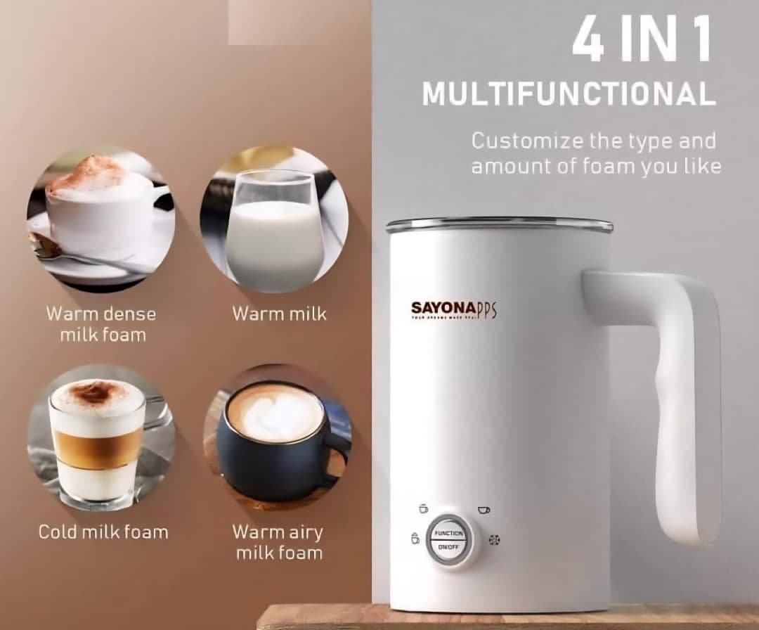 Sayona Hot & Cold Milk Frother – صانعة رغوة حليب بارده وساخنة